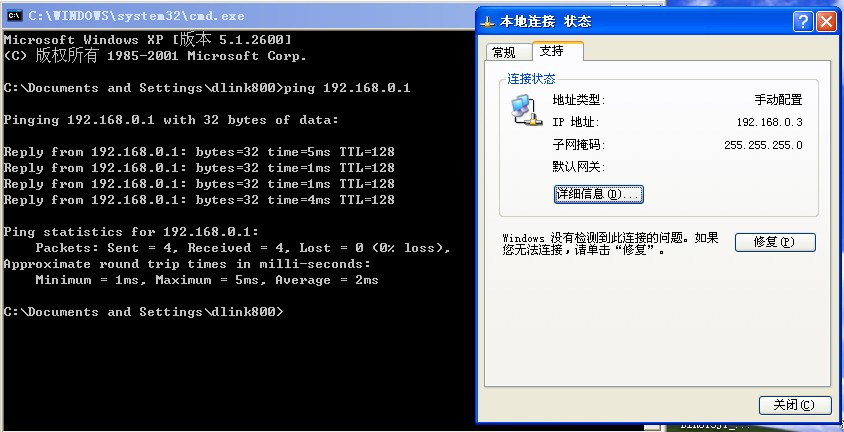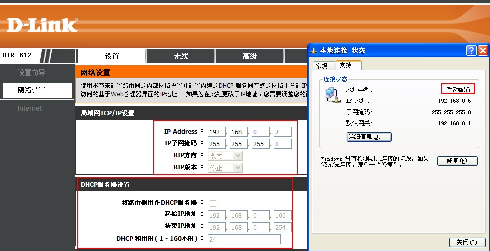 5、登录进入辅的DIR-612-B(默认密码为空),电脑自动获取IP,如图: